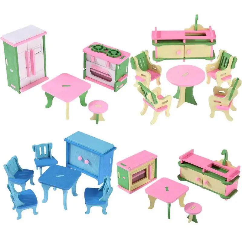 خشبية 3D الأثاث لعب الاطفال محاكاة الأثاث لعب للأطفال اللعب دمى منزل الطفل غرفة مصغرة مجموعة دروبشيبينغ