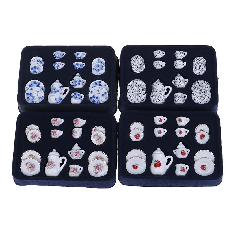 استعارات ل 15 قطعة الخزف فنجان شاي مجموعة زهرة أدوات المائدة المطبخ والأثاث دمية لعب للأطفال 1:12 مصغرة 4 أنماط