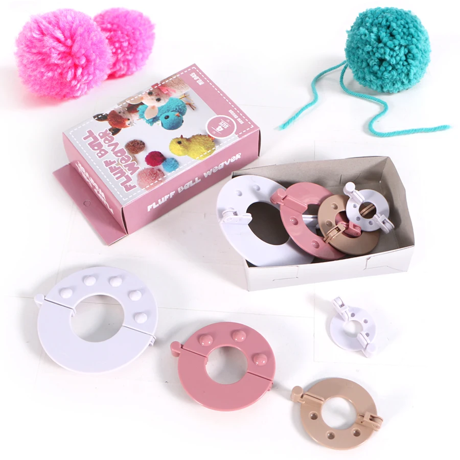 صور من 8 قطع 4 أحجام الزغب الكرة ويفر البلاستيك كرة من الخيوط مع اصواف مجموعة إبرة الحياكة الحرفية أداة لعب للأطفال DIY أدوات خياطة