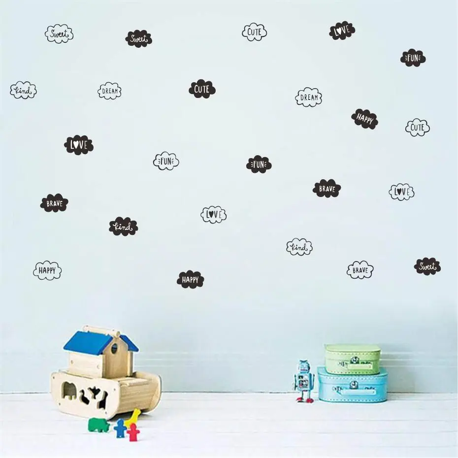 شراءمعلومات اضافية لطيف سحابة و الكلمات ملصقات جدار DIY الفن ملصق حائط من الفينيل مجموعة ديكور المنزل ل حضانة بيبى الأطفال الاطفال نوم ورق حائط لغرفة المعيشة